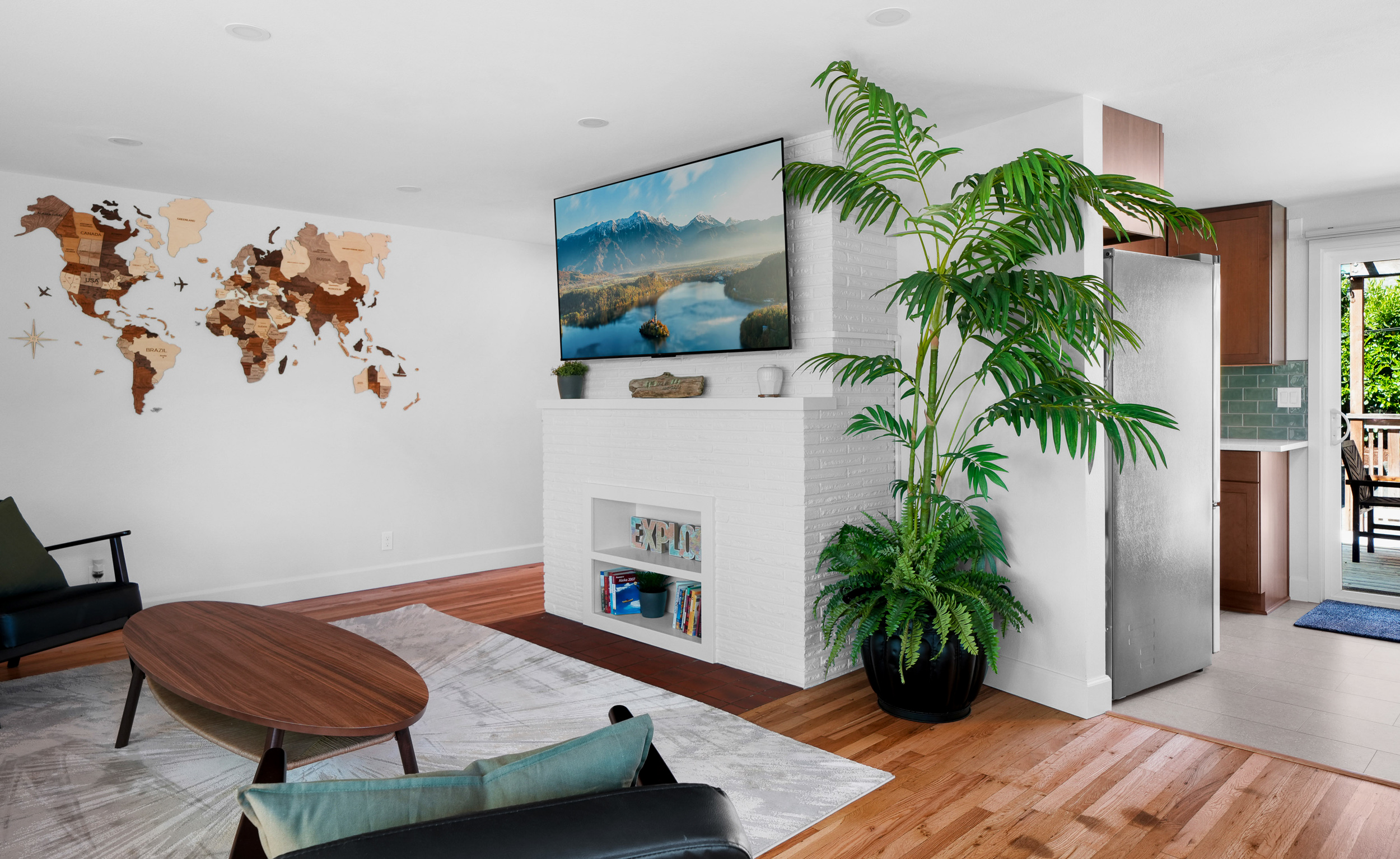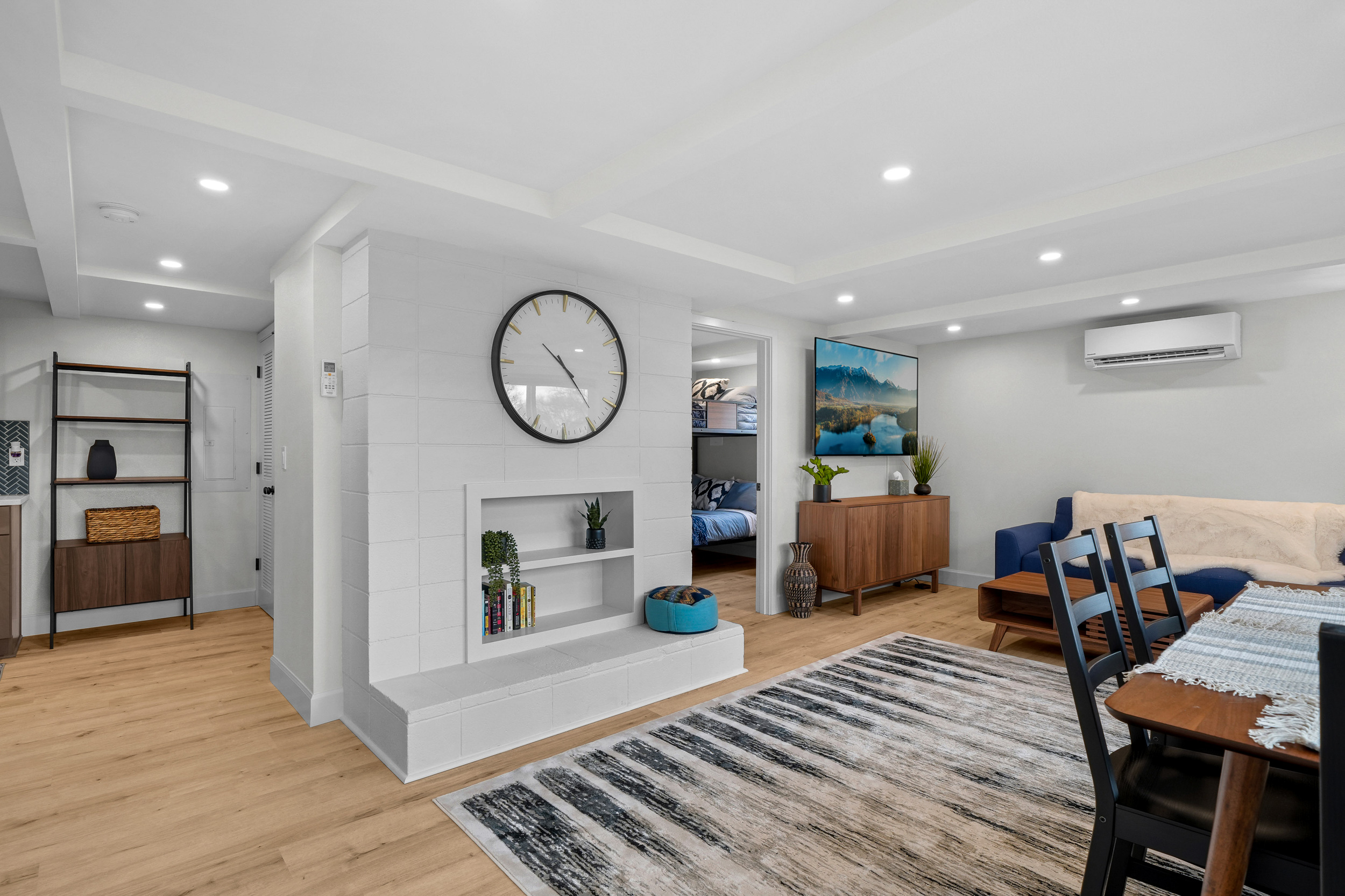 This 680-square-foot ADU offers a comfortable living room, two bedrooms with three full-sized beds, including a bunk bed in one of the rooms, a private patio, and off-street parking.