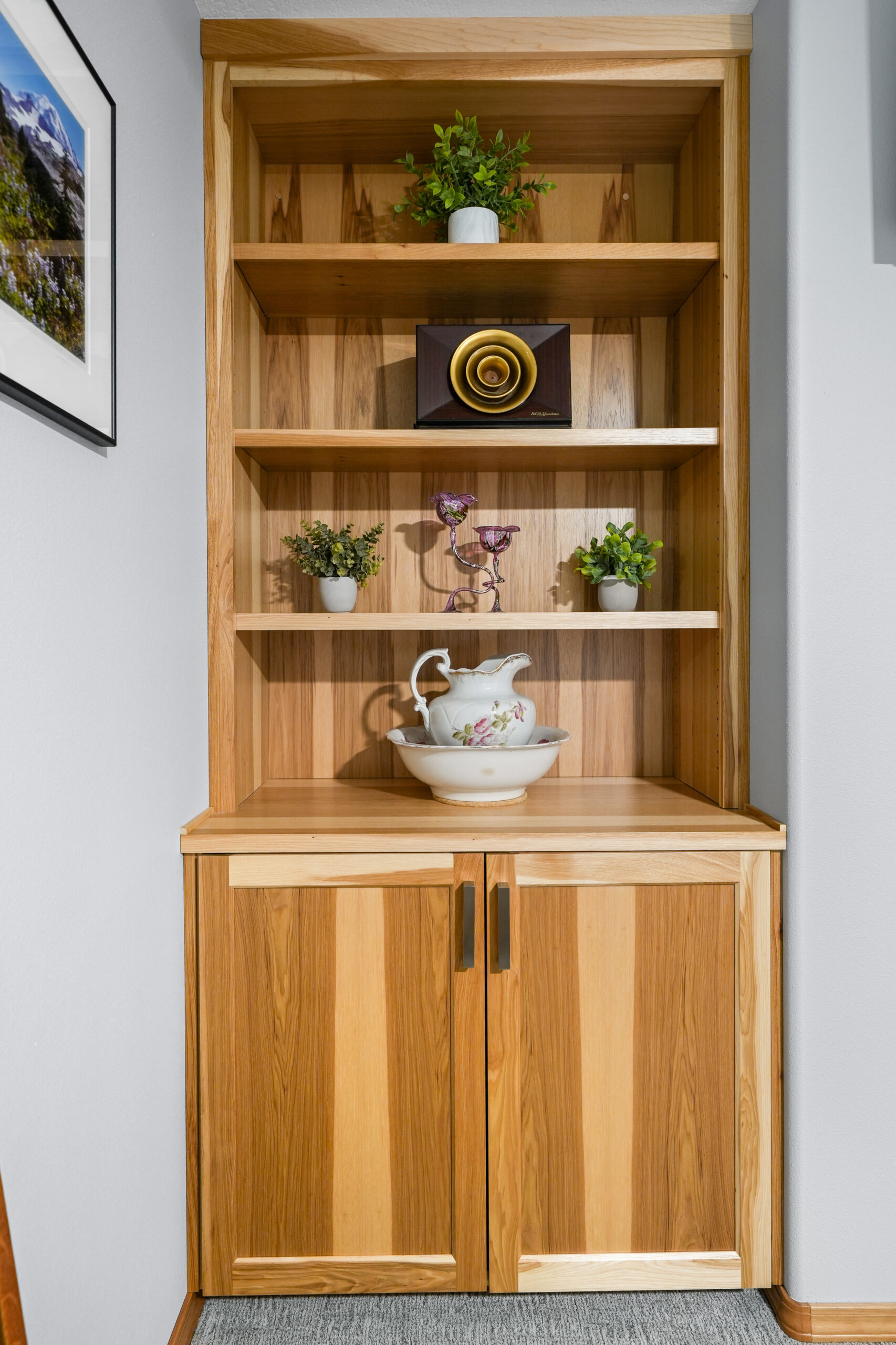 Within the primary closet, we installed custom hickory cabinetry and a lighted closet system. These improvements elevated both storage capacity and daily functionality.