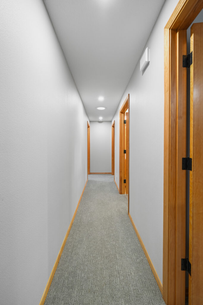 The relocation improved flow within the hallway and created better separation between private and shared spaces.