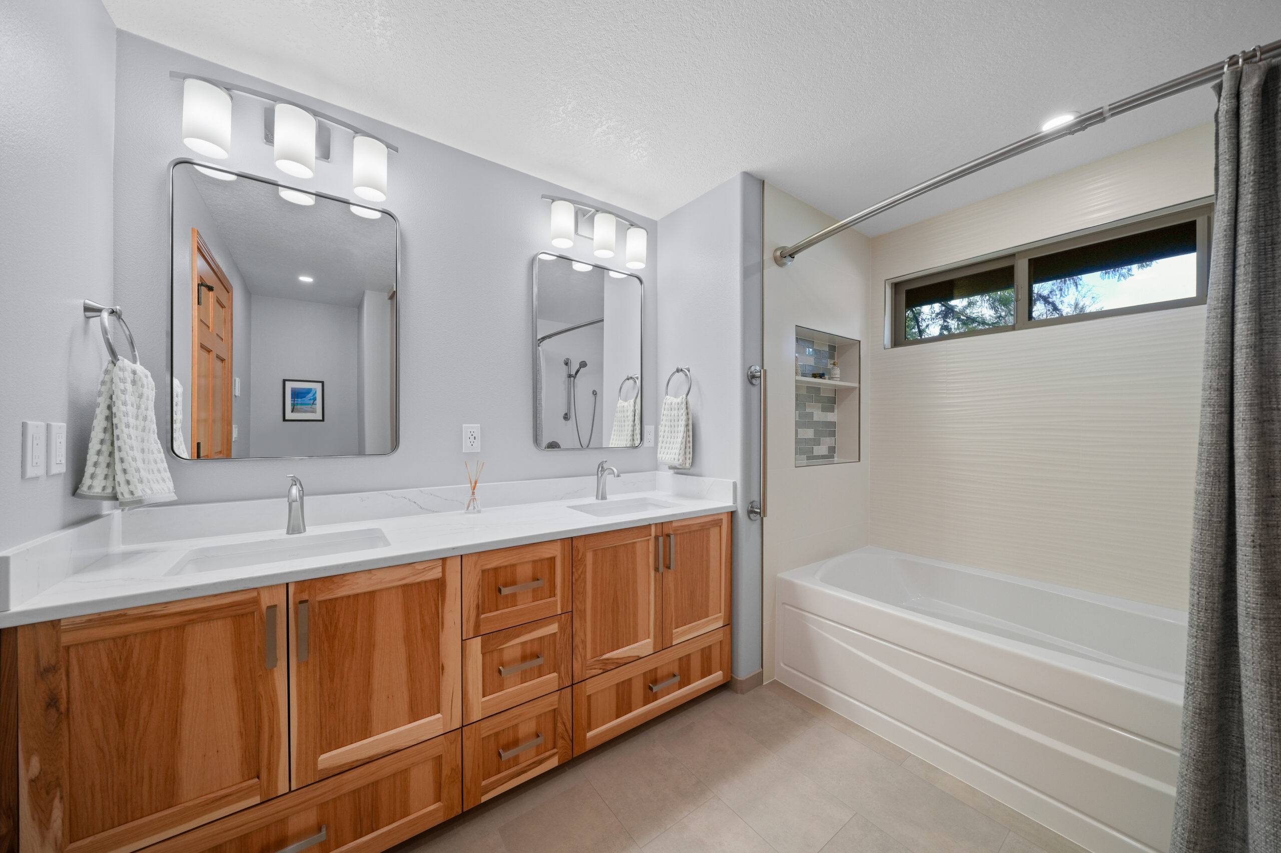 The Irvine’s primary bathroom and hall bathroom were outdated and required a full remodel. The layout between bedrooms and bathrooms felt inefficient, and storage solutions were limited.