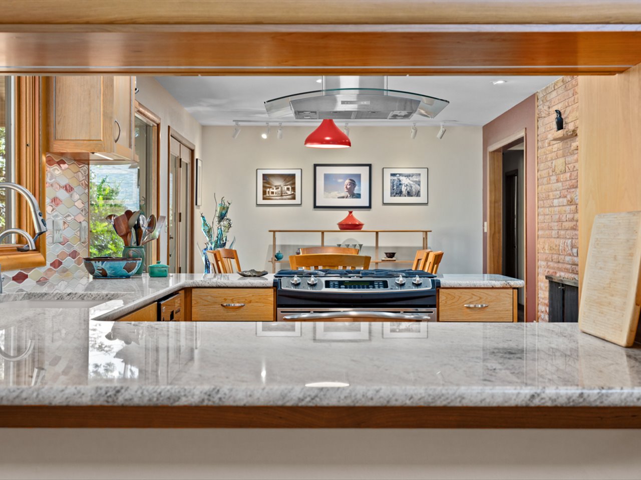 To open up the kitchen, we removed the drop ceiling, soffits, and upper cabinets over the peninsula; we reframed the wall between the kitchen and laundry, and added new structural support for better flow and connection. Custom cherry cabinetry added warmth and elegance to every room, complemented by granite countertops that brought natural depth and durability.