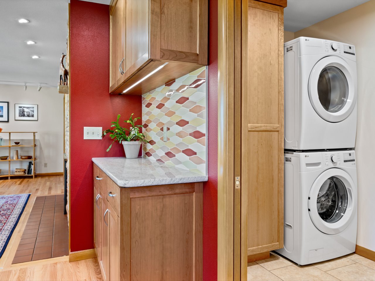 The kitchen design was a true collaboration—John’s artistic mind guided the look of the backsplash and the task lighting, both of which became standout features that made the space uniquely theirs. The laundry and bathroom were reimagined with efficient layouts, floating cabinetry, and durable new flooring. Behind the scenes, updated mechanical, electrical, and plumbing systems enhanced comfort, safety, and performance throughout.