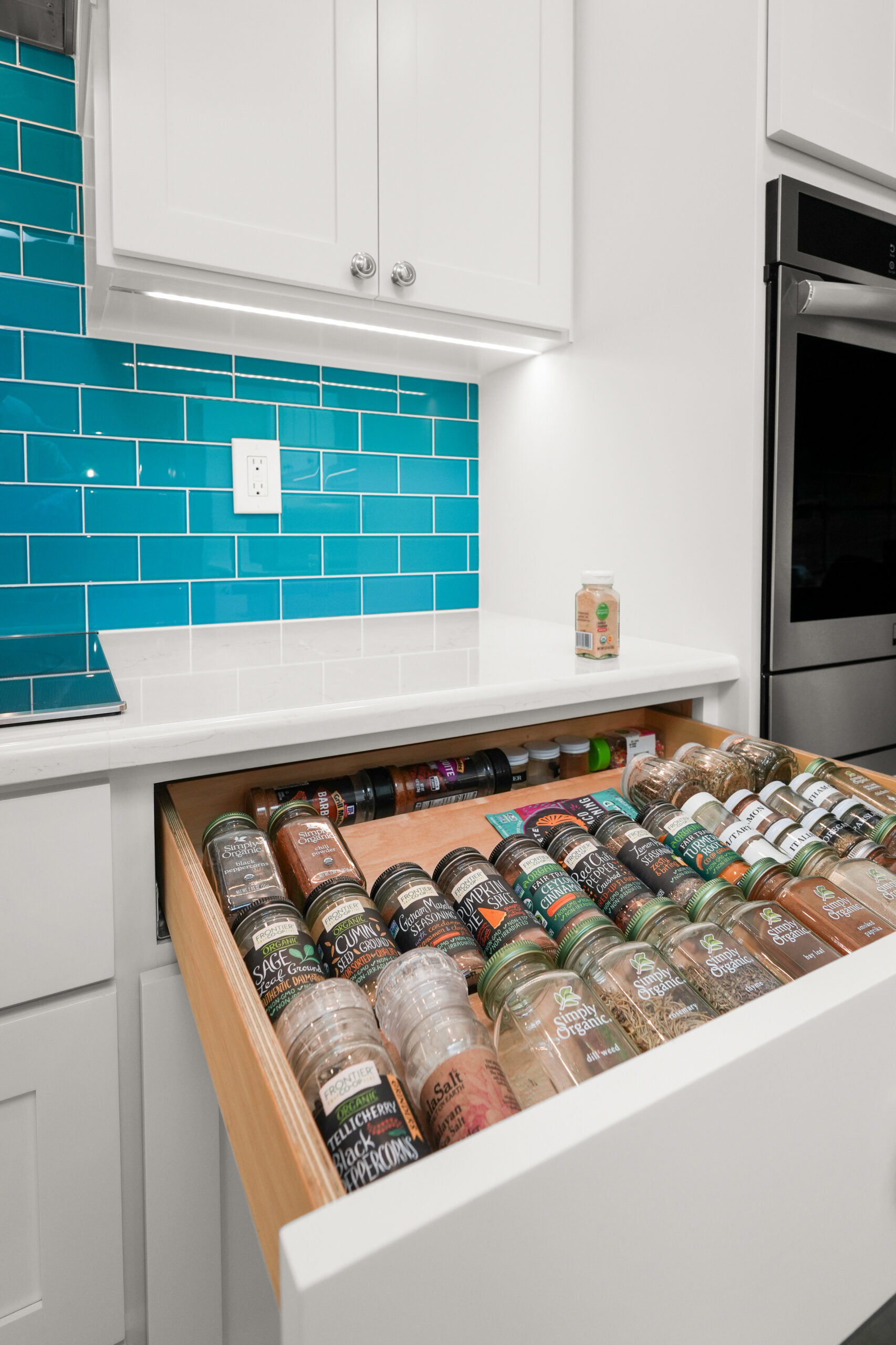The new kitchen was built around custom face-frame shaker cabinetry with soft-close drawers and doors, giving the space a timeless foundation while adding significantly more usable storage. We incorporated thoughtful cabinet features throughout, including pull-outs, drawer storage, adjustable shelving, and dedicated zones for everyday function. The oversized island was replaced with a better-scaled peninsula, which opened up the room while still providing valuable workspace and storage.