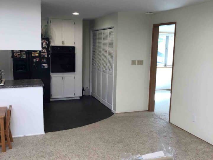 In Phase 1, we removed the bearing wall and installed two recessed beams that opened up the space. We also painted the millwork to brighten up the space.